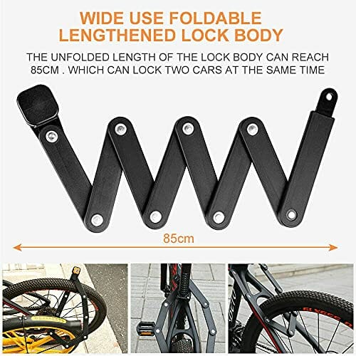 TUNEZ® Składane zapięcie rowerowe wysokie bezpieczeństwo dźwignia hartowana stal stopowa 8 przegubów zabezpieczenie przed kradzieżą zapięcie na hasło rowerowe 85 cm długie składane zapięcie rowerowe do roweru/roweru górskiego/roweru elektrycznego/motocykla