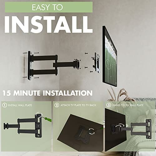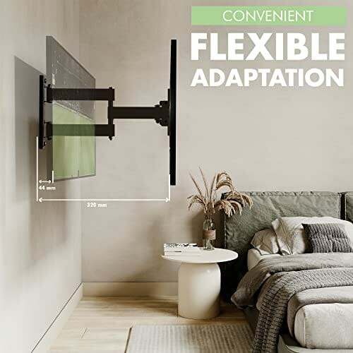 • Oszczędność cennego miejsca – nasz uchwyt na telewizor może być złożony do 44 mm od ściany i może być również wysunięty do maksymalnie 320 mm od ściany. Oszczędza to cenną przestrzeń i nadaje Twojemu domowi piękny, schludny wygląd.