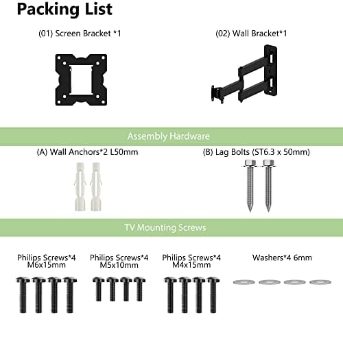 • Bardzo szybka instalacja – nasze uchwyty ścienne do telewizora są dostarczane ze wszystkimi standardowymi materiałami montażowymi. Jest kompatybilny z większością marek telewizorów.