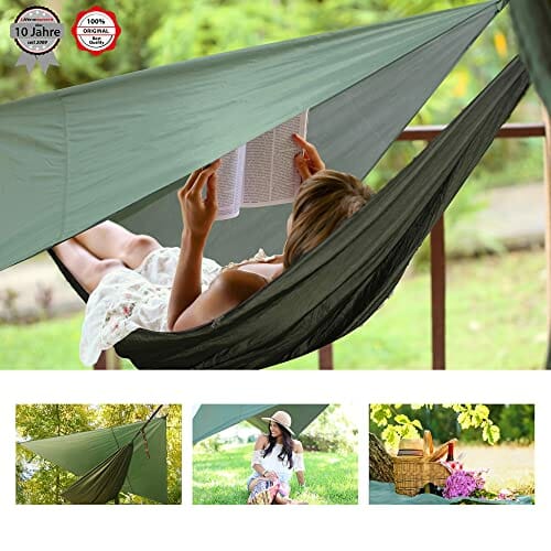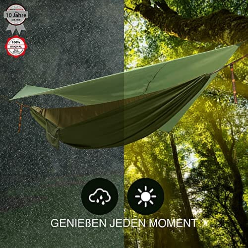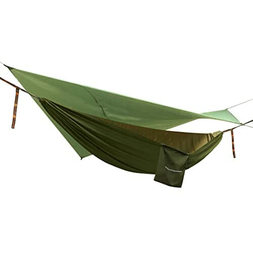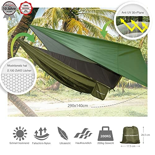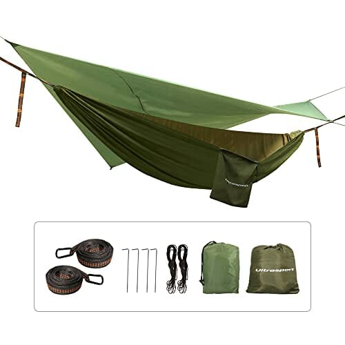 Ultrasport Hamak 3 w 1 do zawieszania między drzewami, zestaw hamakowy z moskitierą, plandeką i torbą transportową, obciążenie do 200 kg, dla osób do 2 m wzrostu, zielony