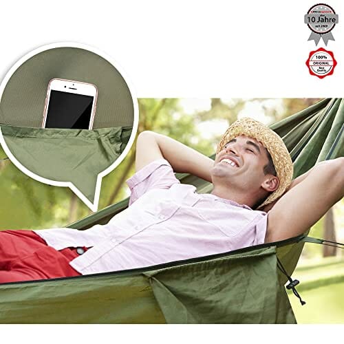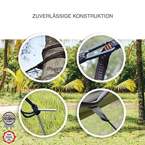 • Dzięki maksymalnemu obciążeniu do 200 kg i wysokości ciała do 200 cm hamak Ultrasport może być również używany przez większe i bardziej dobrze zbudowane osoby do spędzenia nocy