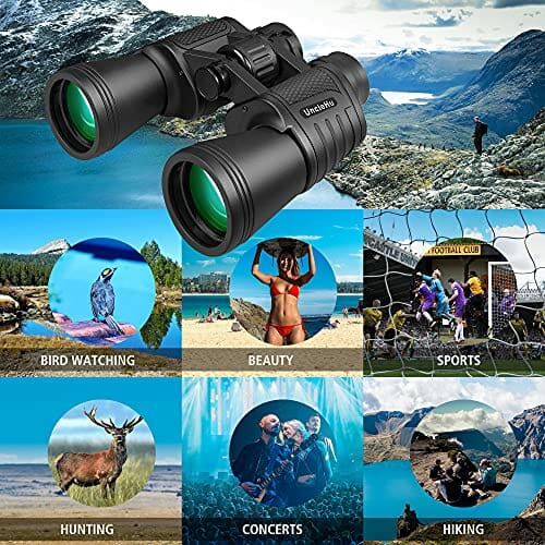 UncleHu® 20 x 50 wysokiej jakości lornetka dla dorosłych z niewielką ilością światła, widoczność w nocy, kompaktowa, wodoszczelna lornetka do obserwacji ptaków, polowania, podróży, meczów piłki nożnej, rozgwiazda magazynowania z torbą i paskiem