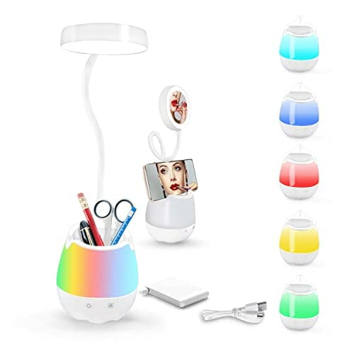 Uni-Fine lampa biurkowa LED z uchwytem na długopis, bezstopniowe ściemnianie światło biurkowe dla dzieci, dbająca o oczy lampa do czytania z ładowaniem USB, kolorowa lampka nocna RGB, elastyczna lampa do nauki 360°, do sypialni, akademika