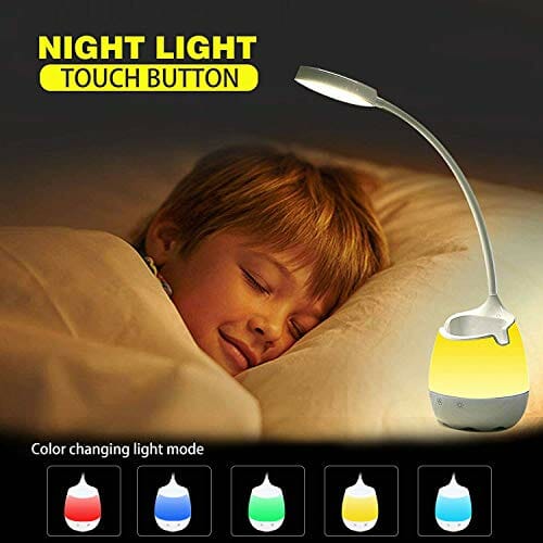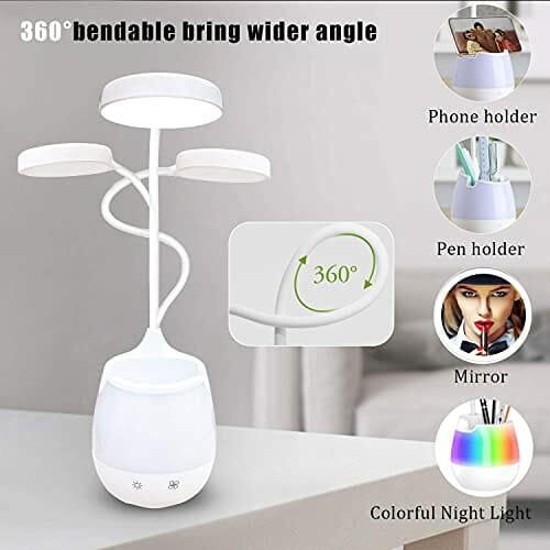 • 【Kolorowa RGB i bezstopniowe ściemnianie】 Lampa biurkowa LED z uchwytem na długopis zapewnia 5 trybów zmiany kolorów światła nocnego RGB i 5%-100% bezstopniowe ściemnianie, jasność i kolor można regulować w każdym trybie, aby spełnić różne wymagania oświetleniowe.