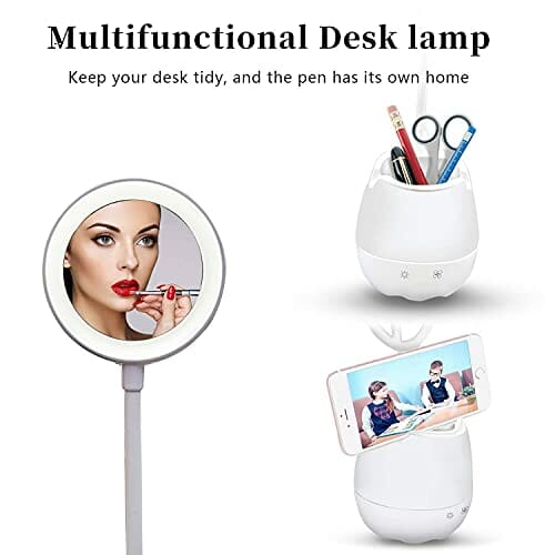 • 【Lampa biurkowa LED 5 w 1】①【Konstrukcja uchwytu na długopisy】Oszczędność miejsca i bardziej uporządkowana; ②【Konstrukcja uchwytu na telefon komórkowy】Wygodna do oglądania filmów; ③【Konstrukcja lampki nocnej】Jako nastrojowe światło dla stworzenia ciepłej atmosfery; ④【Lusterko kosmetyczne 】Spełnia potrzeby dotyczące makijażu poranka.