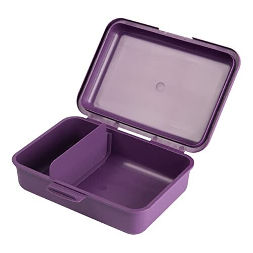 Z przegródkami: w: Z przegródkami: w pojemniku na kanapki z elastyczną przegrodą można praktycznie przechowywać żywność bez ich mieszania. Umożliwia to zabranie chleba maślanego i owoców w pudełku.