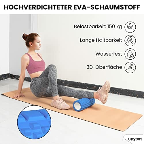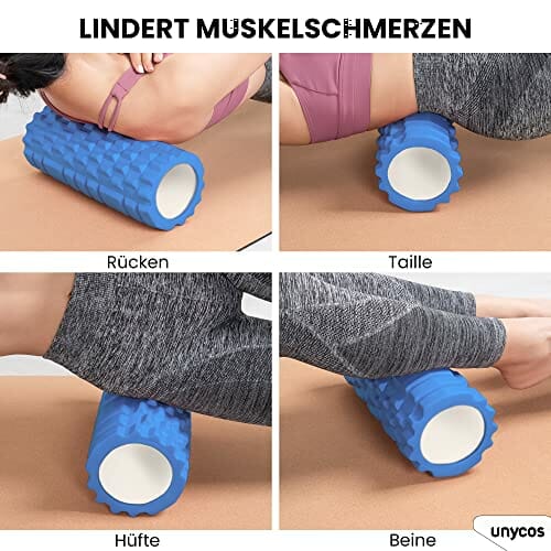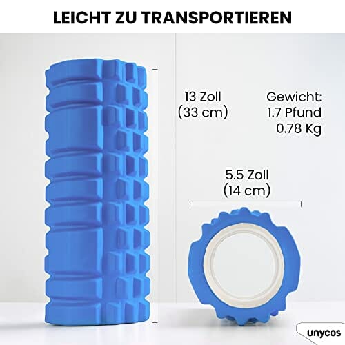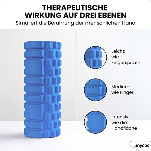 unycos – Wałek do masażu mięśni – Cylinder z gumy piankowej do fitnessu – Ultralekki wałek piankowy – Narzędzie do samodzielnego masażu poprawiające regenerację i elastyczność (niebieski O)