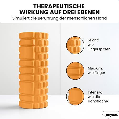 Unycos – Wałek do masażu mięśni – Cylinder z gumy piankowej do fitnessu – Ultralekki wałek piankowy – Narzędzie do samodzielnego masażu (Pomarańczowy)