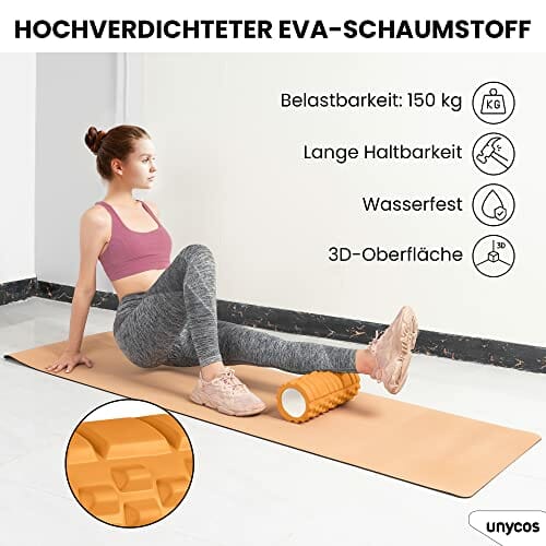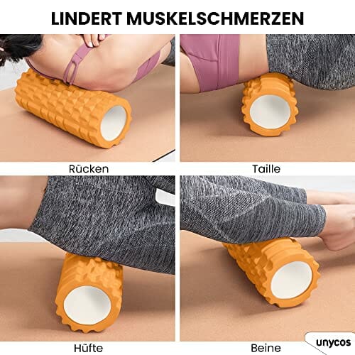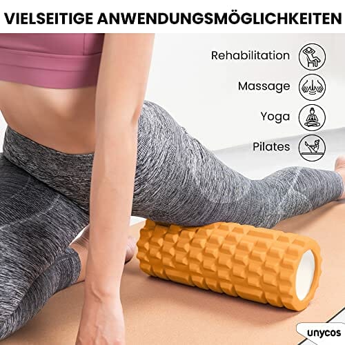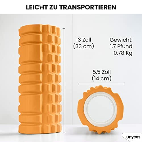 unycos – Wałek do masażu mięśni – Cylinder z gumy piankowej do fitnessu – Ultralekki wałek piankowy – Narzędzie do samodzielnego masażu poprawiające regenerację i elastyczność (Pomarańczowy)