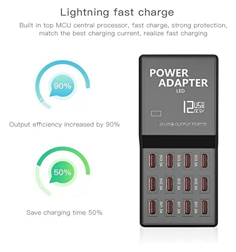 Stacja ładująca USB Wieloportowa stacja ładująca USB Hub 12 portów Ładowanie Inteligentna ładowarka ścienna Szybka stacja ładująca Urządzenie USB do biura, szkoły i domu