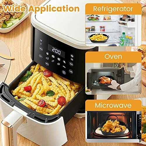 - 🍟 【Weit verbreitet】 Unser ölfreies Friteusenzubehör eignet sich sehr gut für Heißluftfritteusen, aber auch für Backofen, Mikrowelle und Kühlschrank, geeignet für Hähnchen, Rindfleisch, Gemüse, Kekse, Kuchen, Käsekuchen, Pfannkuchen usw.