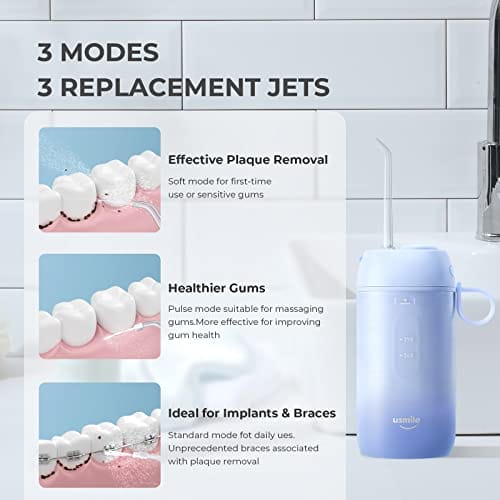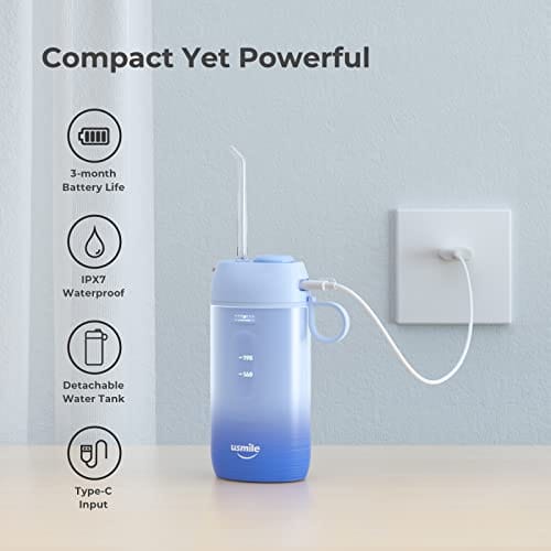 usmile Irygator do zębów Elektryczne flossery i irygatory Przenośny irygator do wody na USB do czyszczenia zębów Water Flosser Cordless z odłączanym zbiornikiem na wodę do domu i podróży C1 niebieski