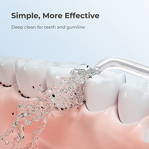 • GŁĘBOKIE CZYSZCZENIE DLA ZDROWIA UST: irygator do wody wykorzystuje technologię pulsacyjną o wysokiej częstotliwości z częstotliwością wibracji 1200-1600 obr./min, aby głęboko wyczyścić resztki jamy ustnej i zachować zdrowe zęby i dziąsła.