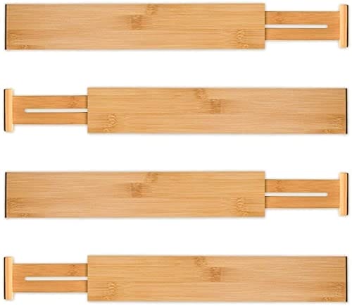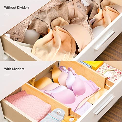 • Dobry projekt i materiał premium- Oba końce przekładki są nałożone gumowymi podkładkami, aby chronić szufladę, a także sam organizer. Organiczne bambusowe elementy moso są trwałe i piękne, wszystkie przegrody są wykonane tylko z najwyższej jakości materiału bambusowego klasy A