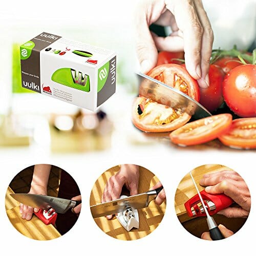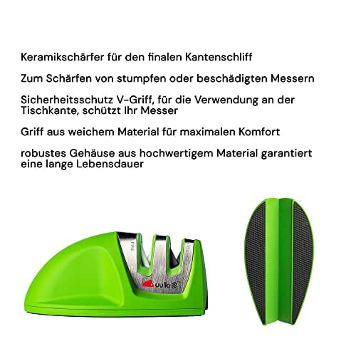 UULKI to najlepsza ostrzałka do noży, jaką możesz znaleźć na rynku. Wykonana z wysokiej jakości materiałów, zapewnia trwałość i wytrzymałość. Ostrzałka ma antypoślizgową gumową podstawę i gumową powłokę, dzięki czemu jest bezpieczna i stabilna. Posiada 2 stopnie, dzięki czemu możesz dopasować ostrzenie do swoich potrzeb. Jest kompaktowa i pasuje do każdej szuflady. Ostrzałka jest dostępna w zielonym kolorze, który dodaje jej uroku.