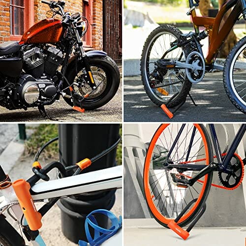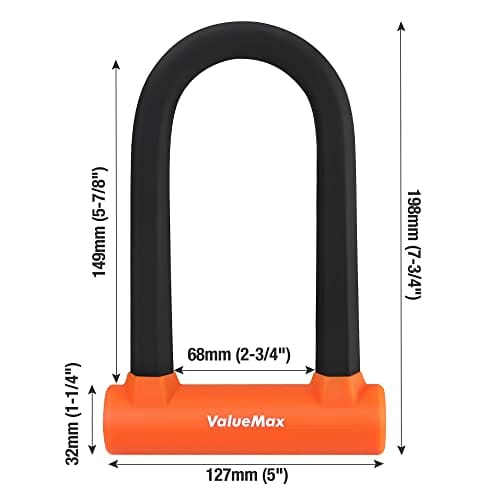 ValueMax Zamek rowerowy o wysokim poziomie bezpieczeństwa 16 mm, z linką zabezpieczającą o długości 1,8 m, wytrzymały zamek D i uchwyt, do motocykli, skuterów, rowerów, drzwi, czarno-pomarańczowa