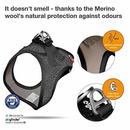 • Idealne dopasowanie dla małych i średnich psów: szelki dla psa Vest Harness Merino zapewniają dzięki ergonomicznemu kształtowi 3D Comfort Fit, wygodne rozłożenie nacisku na całym ciele psa.