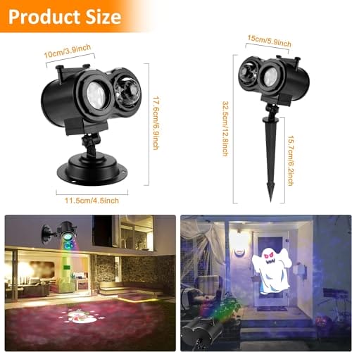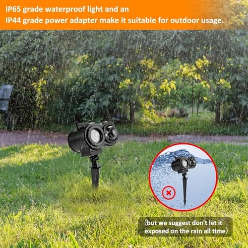 • 【Możliwość zastosowania w pomieszczeniach i na zewnątrz】 Ten projektor na Halloween ma podstawę i stojak. Dzięki temu można go umieścić w podłożu ogrodowym lub postawić na podłodze w pomieszczeniach. Ponadto wodoszczelne światło klasy IP65 i zasilacz klasy IP44 nadają się do użytku na zewnątrz. Na zewnątrz lub w pomieszczeniach, jak tylko chcesz