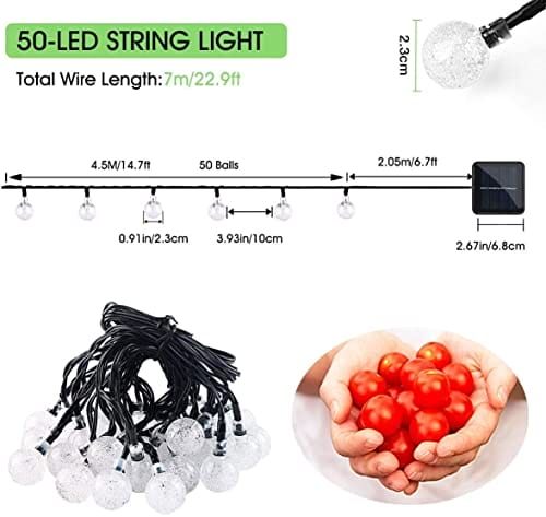VIFLYKOO Solarny łańcuch świetlny na zewnątrz, odporny na warunki atmosferyczne, 7 m, 50 diod LED, kolorowy łańcuch świetlny na zewnątrz, 8 trybów pracy, IP65, wodoszczelny, solarny łańcuch świetlny