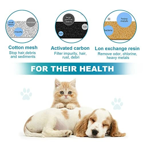 • Poprawa jakości wody: Nasz zamiennik elementu filtra jest wykonany z wysokiej jakości polimeru, węgla aktywnego i żywicy jonowymiennej. Może skutecznie filtrować i usuwać włosy / pozostałości/zapachy/metale ciężkie/bakterie itp. Zachowaj jakość wody w fontannie do picia zwierząt domowych i skutecznie chroń swoje zwierzę zdrowsze.