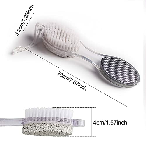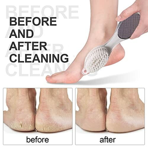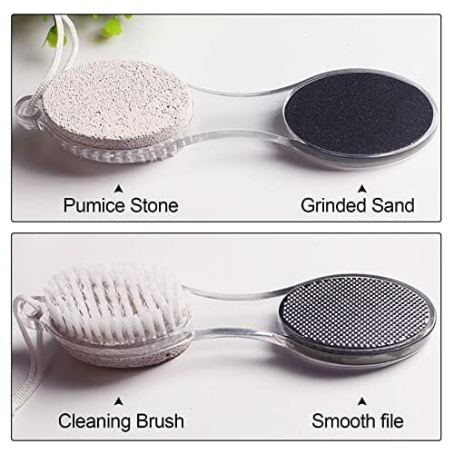 • Różne funkcje: Zaprojektowany z kamieniem Pumice do złuszczania twardej i suchej skóry, pilnik do stóp ze stali nierdzewnej do szlifowania grubych i twardych zrogowaceń, papier ścierny do szlifowania skorupy i wygładzania stóp, a także miękka szczotka do czyszczenia martwego naskórka i zanieczyszczeń.
