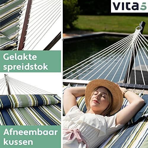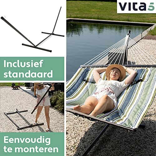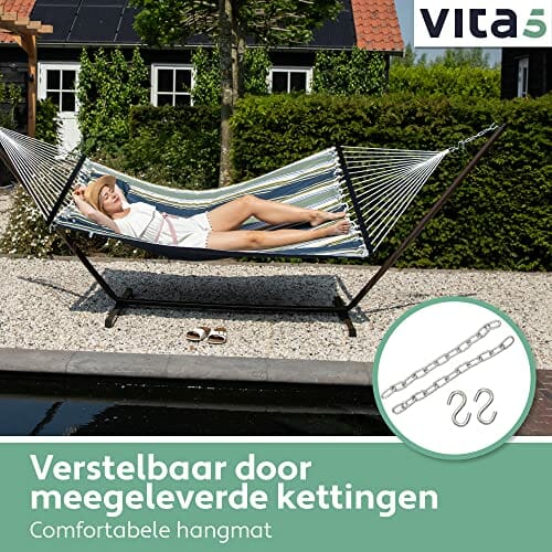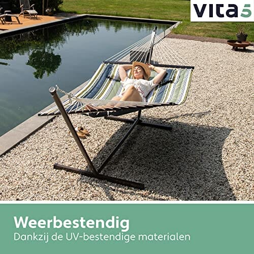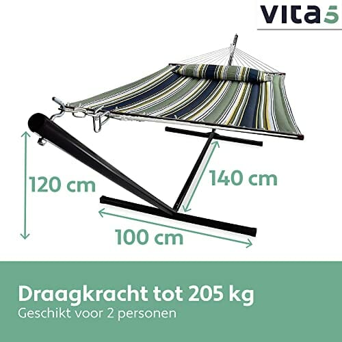 VITA5 Hamak outdoorowy – hamak ze stelażem do ogrodu, na basen i balkon – duży hamak dla 2 osób, podwójny hamak ze stojakiem, nośność 200 kg (ciemno-zielony/niebieski)