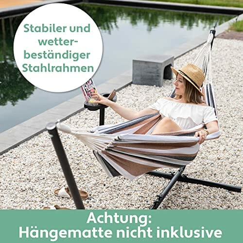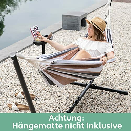 VITA5 Stelaż hamaka outdoorowego – stelaż hamaka – stabilny stalowy hamak ze stelażem, składany – przenośny stojak do hamaka (z uchwytem na napoje)