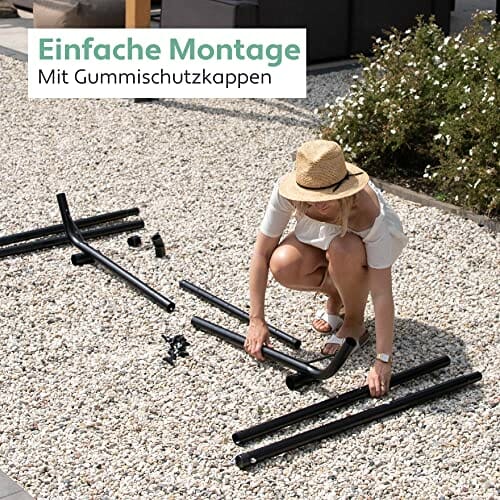 • Dla Twojej ulubionej hamaka – nasz metalowy stelaż do hamaka jest kompatybilny ze wszystkimi hamakami. Niezależnie od tego, czy jest to hamak z tkaniny, hamak z siatki lub hamak z drążkiem, stelaż hamaka pasuje