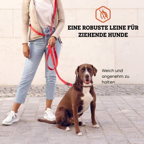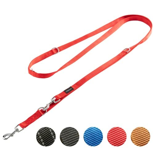 Smycz Dla Psa Do Szkolenia – 3 m – Nylonowa Grafitowa Podwójna Smycz Dla Małych Średnich i Dużych Psów – Regulowana Smycz Do 4 Różnych Długości – Czerwona
