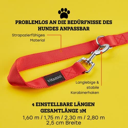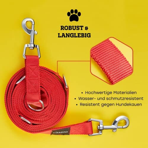 ✅ Podwójnie Zakończona Smycz: Podwójnie Zakończona Smycz Dla Psa: Smycz dla psa Vitazoo wykonana jest z wytrzymałego nylonu, dzięki czemu można ją w 100% prać i nadaje się do prania w pralce. Dzięki stabilnej konstrukcji jest szczególnie odpowiednia dla dużych i silnych psów – jak również dla wszystkich rozmiarów