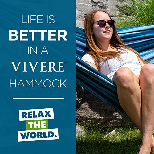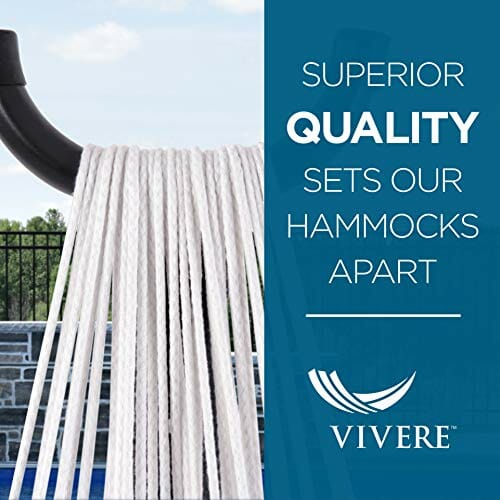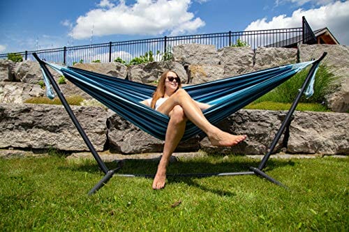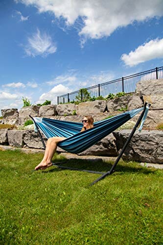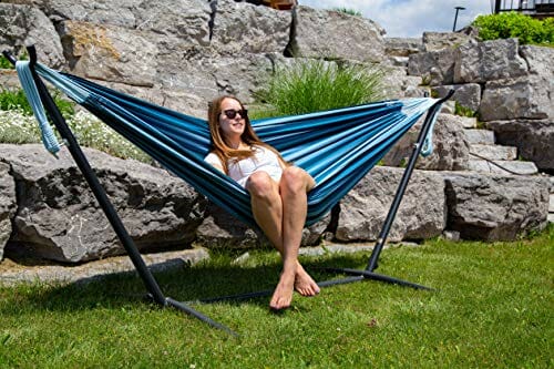 Vivere Podwójny Hamak Bawełniany ze Stelażem, Niebieski (Blue Lagoon), 249 x 109 x 104 cm