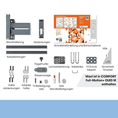 • Łącznie z zaciskiem kablowym i certyfikatem TÜV: poprowadź kable z telewizora do ściany. Uchwyty ścienne Full Motion+ OLED posiadają certyfikat TÜV do 3 razy ich maksymalnej nośności.