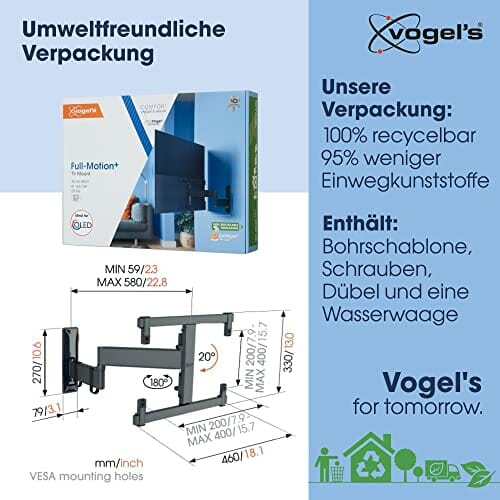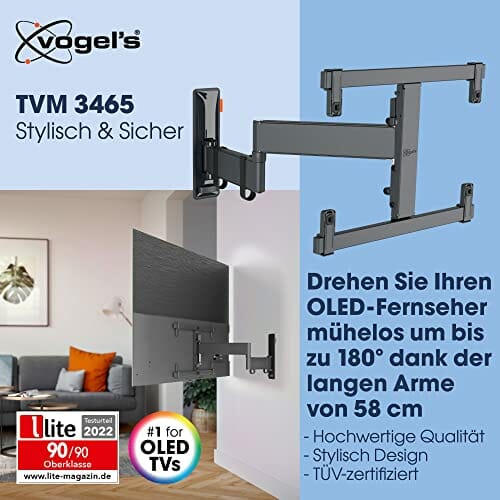 Vogel’s TVM 3465 obrotowy uchwyt ścienny OLED do telewizorów 32-65 cali, maks. 25 kg, wychylny do 180°, Full Motion OLED uchwyt maks. VESA 400 x 400, uniwersalna kompatybilność