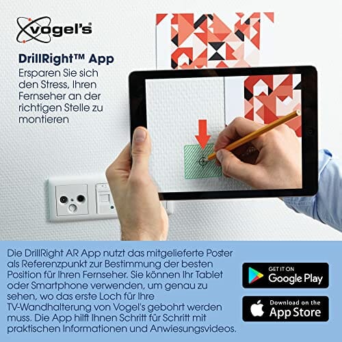 • Łatwa instalacja dzięki bezpłatnej aplikacji ptaków: instalacja uchwytu ściennego TV jest bardzo prosta, a za pomocą naszej bezpłatnej aplikacji DrillRight AR (Android i iOS) można łatwo zaznaczyć pierwszy otwór.
