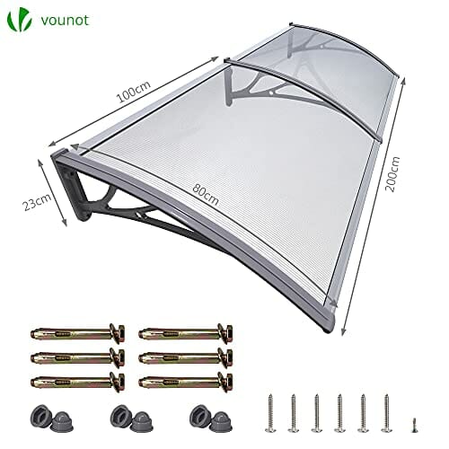 - Das Haustürüberdachung ist einfach zu installieren und enthält die Anweisungen sowie 6 Schraubensätze und 6 Kunststoffhüte für Schrauben für eine schnelle Installation.