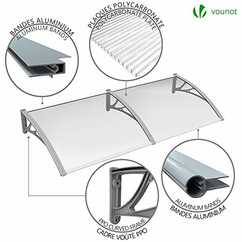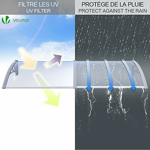 - Breite Anwendung, die Überdachung ist für die Montage an Fronteingängen, Garagen, Balkonen, Fenstern, Schaufenstern, Terrassen, Gartentüren usw.