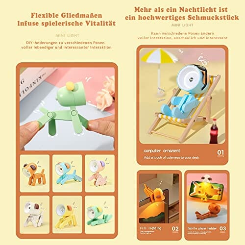 • ELASTYCZNY I REGULOWANY: Postawę lampki nocnej LED dla psa i kierunek reflektora można dowolnie regulować, a kończyny są bardzo elastyczne. Możesz dostosować kończyny, aby używać ich jako uchwytu na telefon komórkowy, lub możesz osadzić lampę dla psa w ekranie komputera lub w innym pożądanym miejscu oświetlenia, aby stworzyć swój własny mały świat.