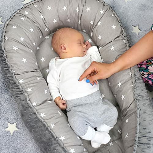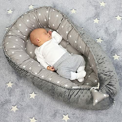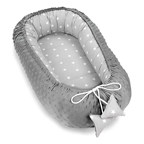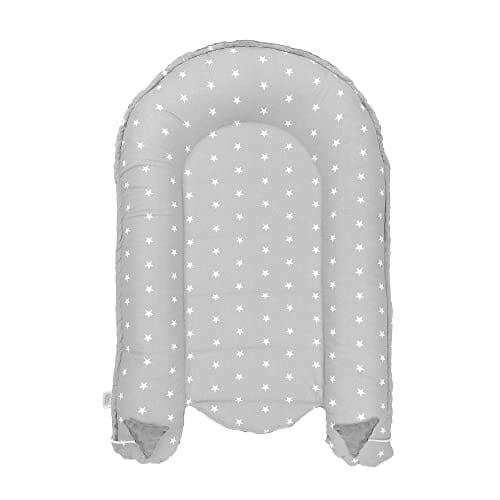 Ciepłe gniazdko niemowlęce 90×50 cm – przytulanki gniazdko noworodkowe kokon zimowy/jesienny kokon niemowlęcy gwiazdki ciemnoszary