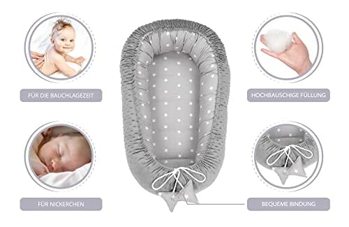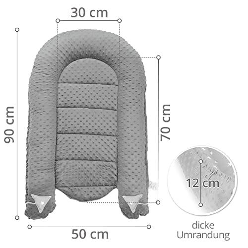 • STWÓRZ PRZYTULNE ŚRODOWISKO – Ciekawe kolory, odpowiednie dla dzieci i modne. Kokon niemowlęcy ma idealny rozmiar, otuli Twoje dziecko i sprawi, że poczuje się bezpiecznie. Szerokość kokonu można regulować za pomocą bawełnianego sznurka. Długość 70 cm – można poluzować sznurki i zyskać więcej miejsca – aż 90 cm.