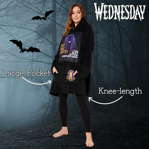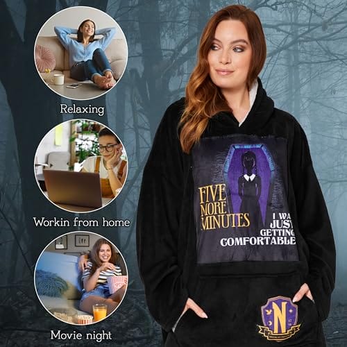 Koc z kapturem Wednesday dla kobiet i nastolatków to przytulna bluza oversize z polaru, dostępna w jednym rozmiarze. Idealna na chłodne wieczory i jako prezent dla kobiet. Ta bluza z kapturem zapewni Ci ciepło i wygodę. Wykonana z wysokiej jakości materiałów, zapewniających trwałość i miękkość. Dostępna w kategorii Bluzo-koce.