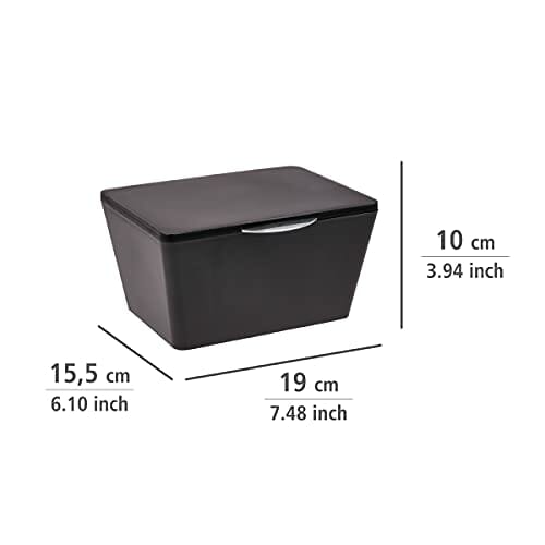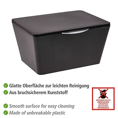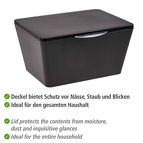 WENKO Pudełko do przechowywania z pokrywką Brasil czarne, kosz do przechowywania, kosz łazienkowy z pokrywką