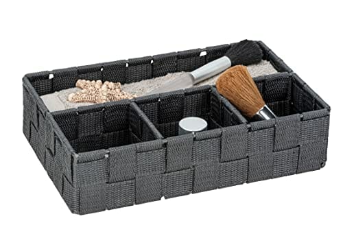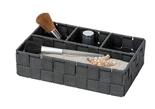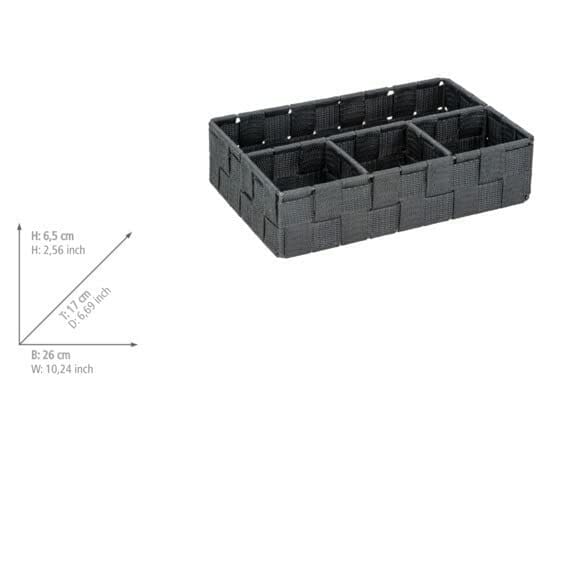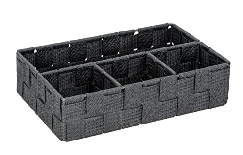 WENKO Kosz do przechowywania Adria Klein ciemnoszary – organizer łazienkowy z 4 przegródkami, polipropylen, 26 x 6,5 x 17 cm, ciemnoszary