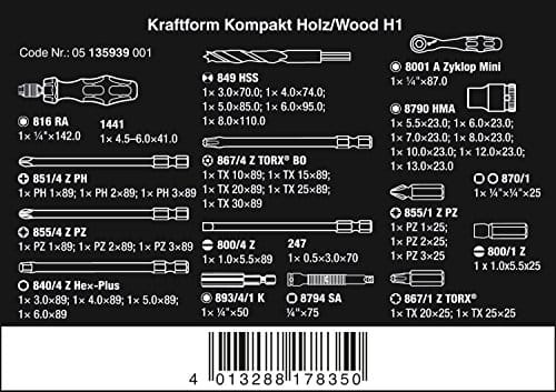 Zestaw narzędzi wkrętakowych do drewna Kraftform Kompakt H 1 Wera