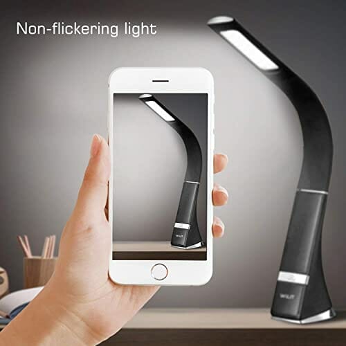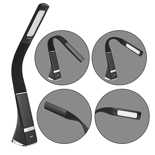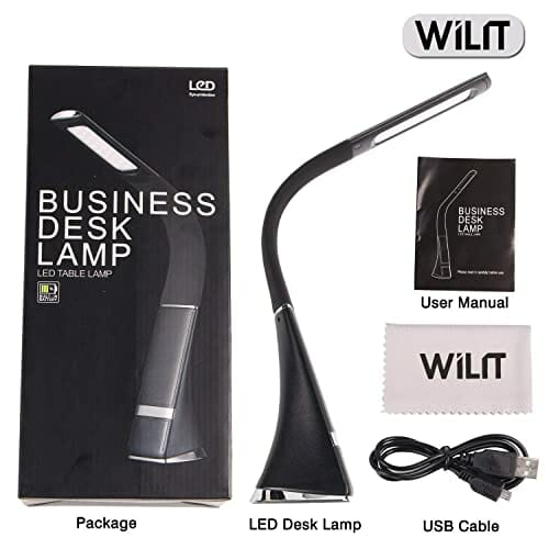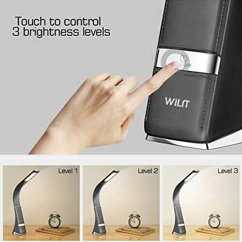 WILIT Lampa biurkowa LED, bezprzewodowa, ładowana lampa stołowa na baterie z akumulatorem 1800 mAh i 3 poziomami jasności, lampa biurowa, dotykowa, ściemniana, o wyglądzie skóry, czarna