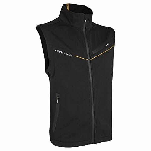 • Lekka kamizelka Tech dla golfistów, Żółte paski FG Tour, zapewnia wyjątkowy styl, utrzymuje ciepło dzięki lekkiej, 2-warstwowej tkaninie funkcyjnej i wodoszczelnemu zamkowi błyskawicznemu.