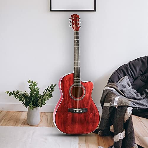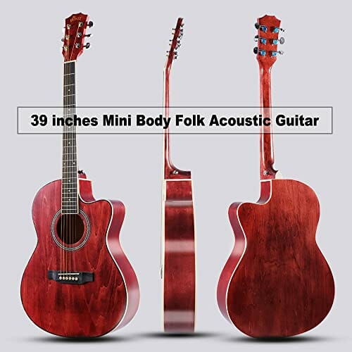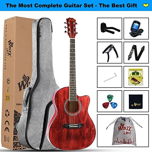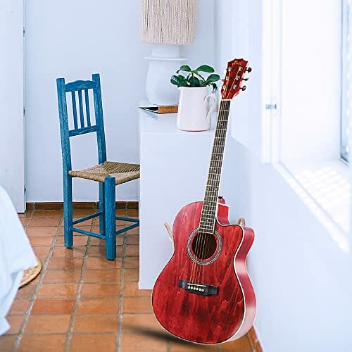 Zestaw gitarowy Winzz Western dla początkujących, czerwona gitara akustyczna, gitara podróżna, 39”, dla studentów lub dorosłych