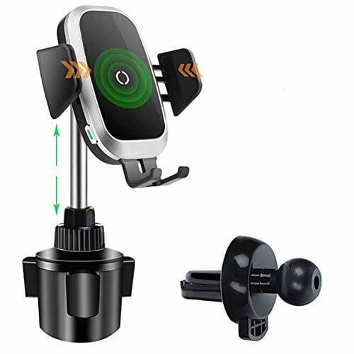 leChivée Bezprzewodowa samochodowa ładowarka do telefonu, uchwyt na kubek ładowarka do telefonu, 2 w 1, automatyczny czujnik, regulowany uchwyt na kubek, kompatybilny z iPhone 13 12 11 Pro Max XR X Samsung S21 S20 Note20 wszystkie smartfony