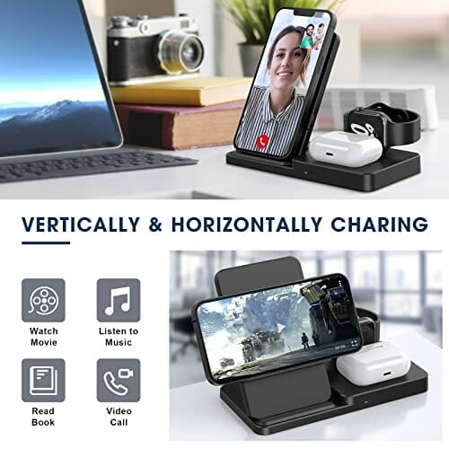 Bezprzewodowa ładowarka 3 w 1, indukcyjna stacja ładująca do iPhone 14, 13, 12, 11 X Pro Max, szybka bezprzewodowa ładowarka, kompatybilna z Apple Watch i Air Pods