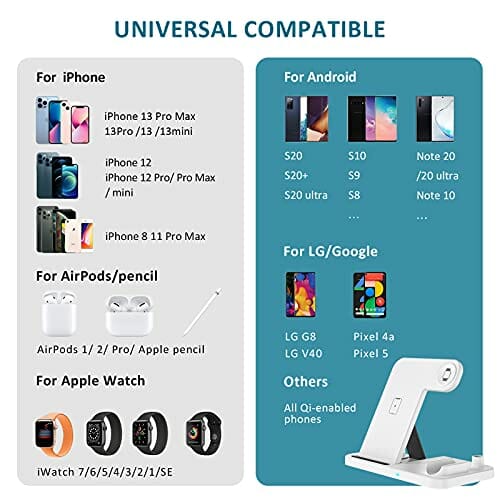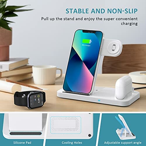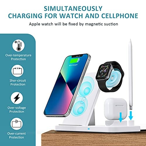 LECHLY Ładowarka bezprzewodowa, 4 w 1, indukcyjna stacja ładująca do Apple Watch Airpods Pro, certyfikat Qi, bezprzewodowa ładowarka do iPhone 12/SE/11/X/XR/Xs Max/8, Samsung Galaxy S20/S10