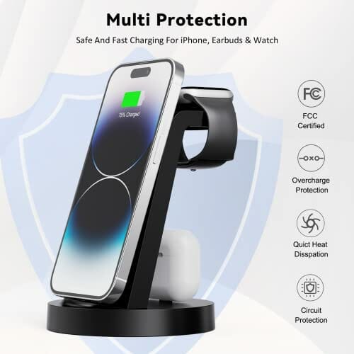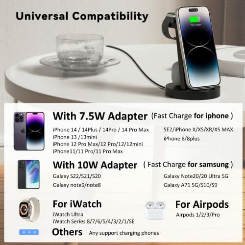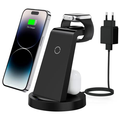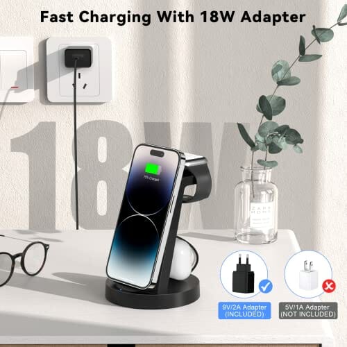 Bezprzewodowa ładowarka szybka indukcyjna stacja ładująca z adapterem 18 W 3 w 1 bezprzewodowa ładowarka kompatybilna z iPhone-14/13/12/11/Pro/SE/X/XS/XR/8 Apple Watch 8/7/6/SE/5/4/3/2, Air Pods Pro